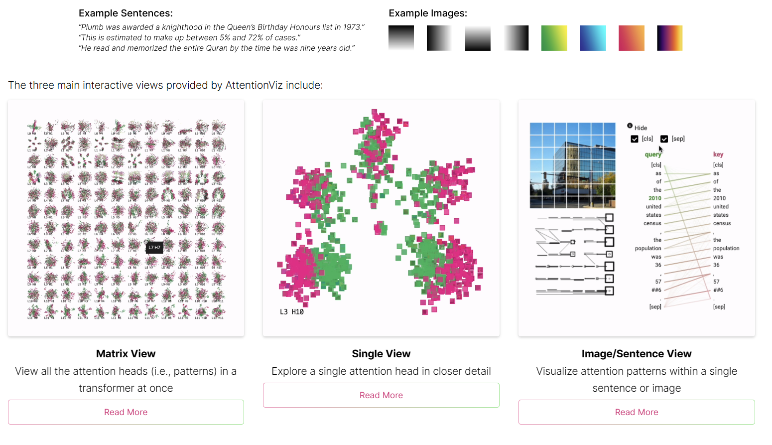 Attention Viz is an interactive tool that visualizes global attention patterns for transformer models. To create this tool, we visualize the joint embeddings of query and key vectors.