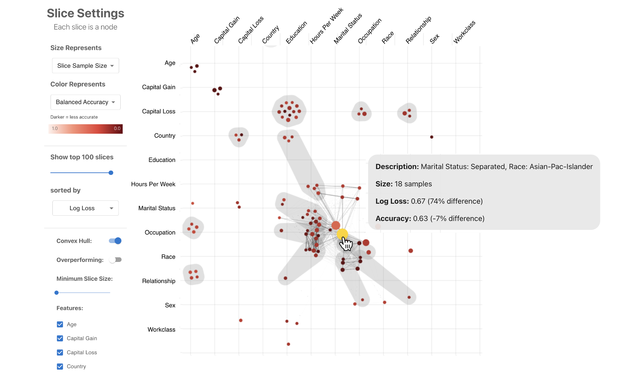 An interactive visualization system for identifying and understanding biases in machine learning models.